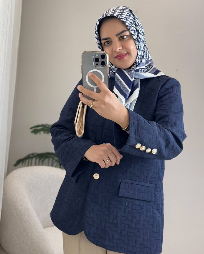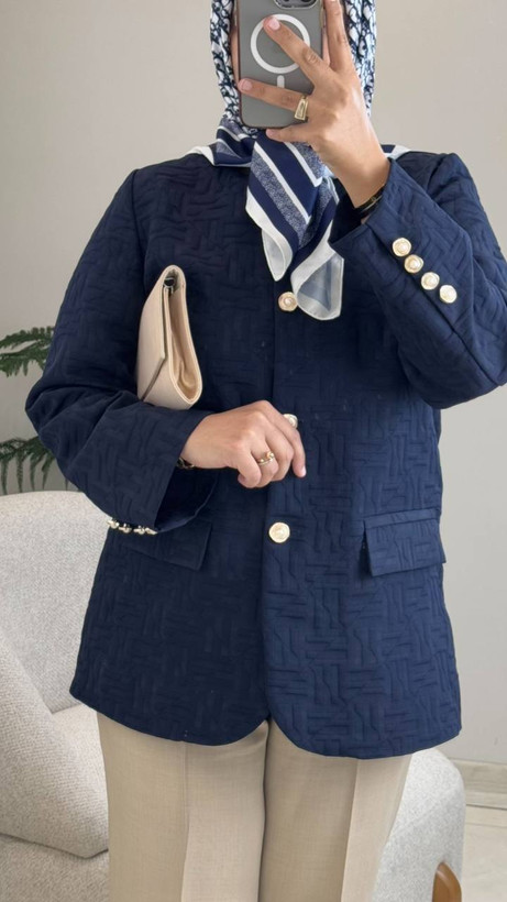 کت زنانه سورمه ای مهرسا پارچه ژاکارد استایل رسمی