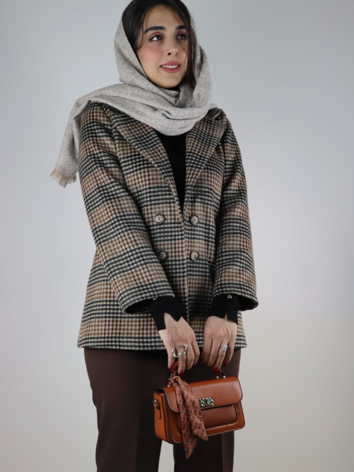 پارچه فوتر موهر وارداتی با یقه انگلیسی و جیب فیلتاپ مناسب استایل بین رسمی و روزمره.